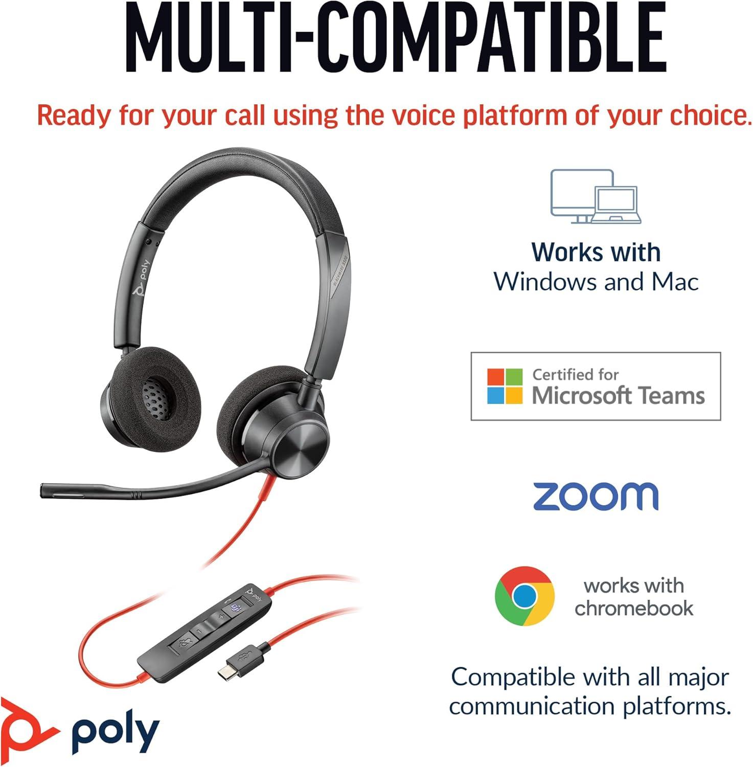 Plantronics – Blackwire 3320 USB-A – Wired, Dual-Ear (Stereo) Headset with Boom Mic – USB-A to Connect to Your PC, Mac or Cell Phone – Works with Teams, Zoom & More(Teams Certified)