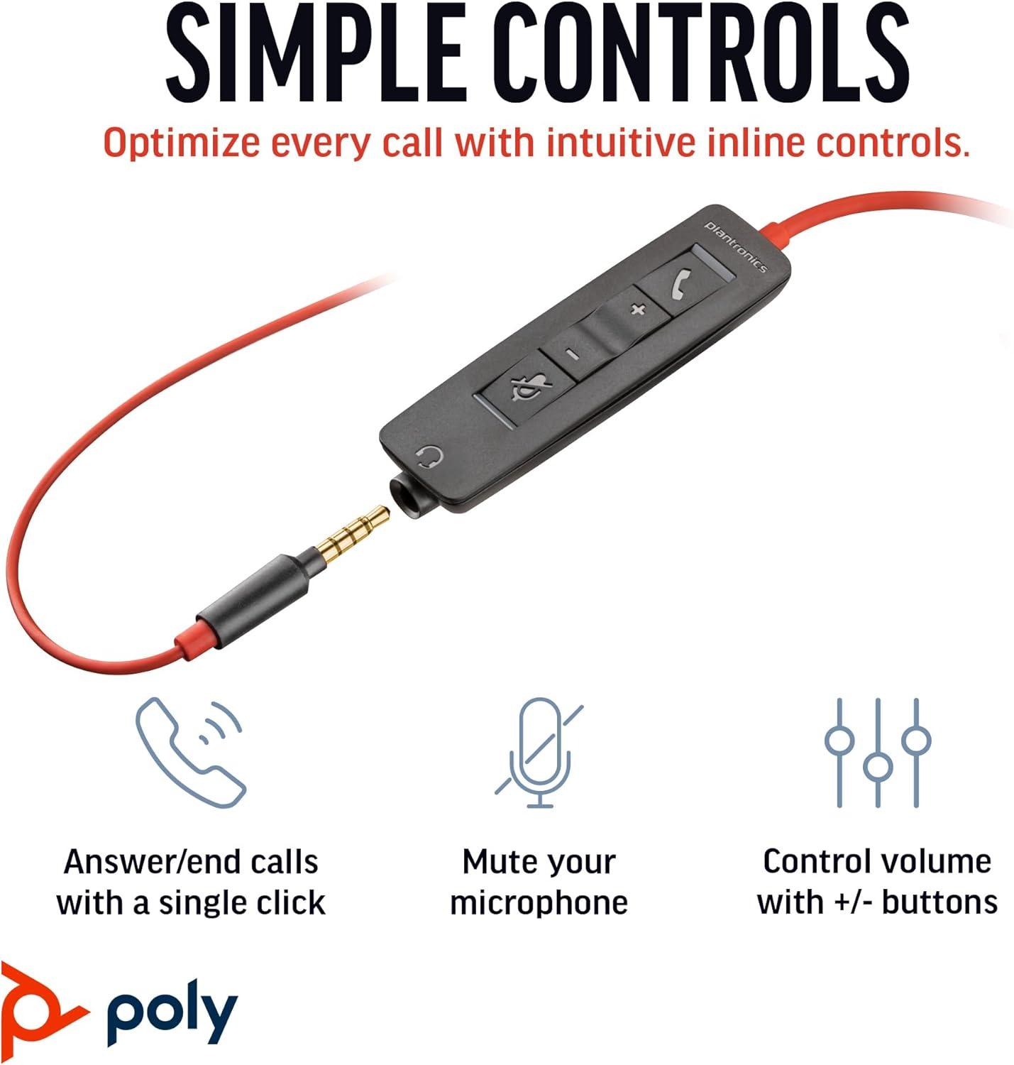 Poly Blackwire 3225 Wired Headset (Plantronics) – Noise-Canceling Mic – Stereo Design – Connect to PC/Mac/Mobile via USB-C, USB-A, or 3.5mm – Works w/Teams, Zoom – Amazon Exclusive(One Size)