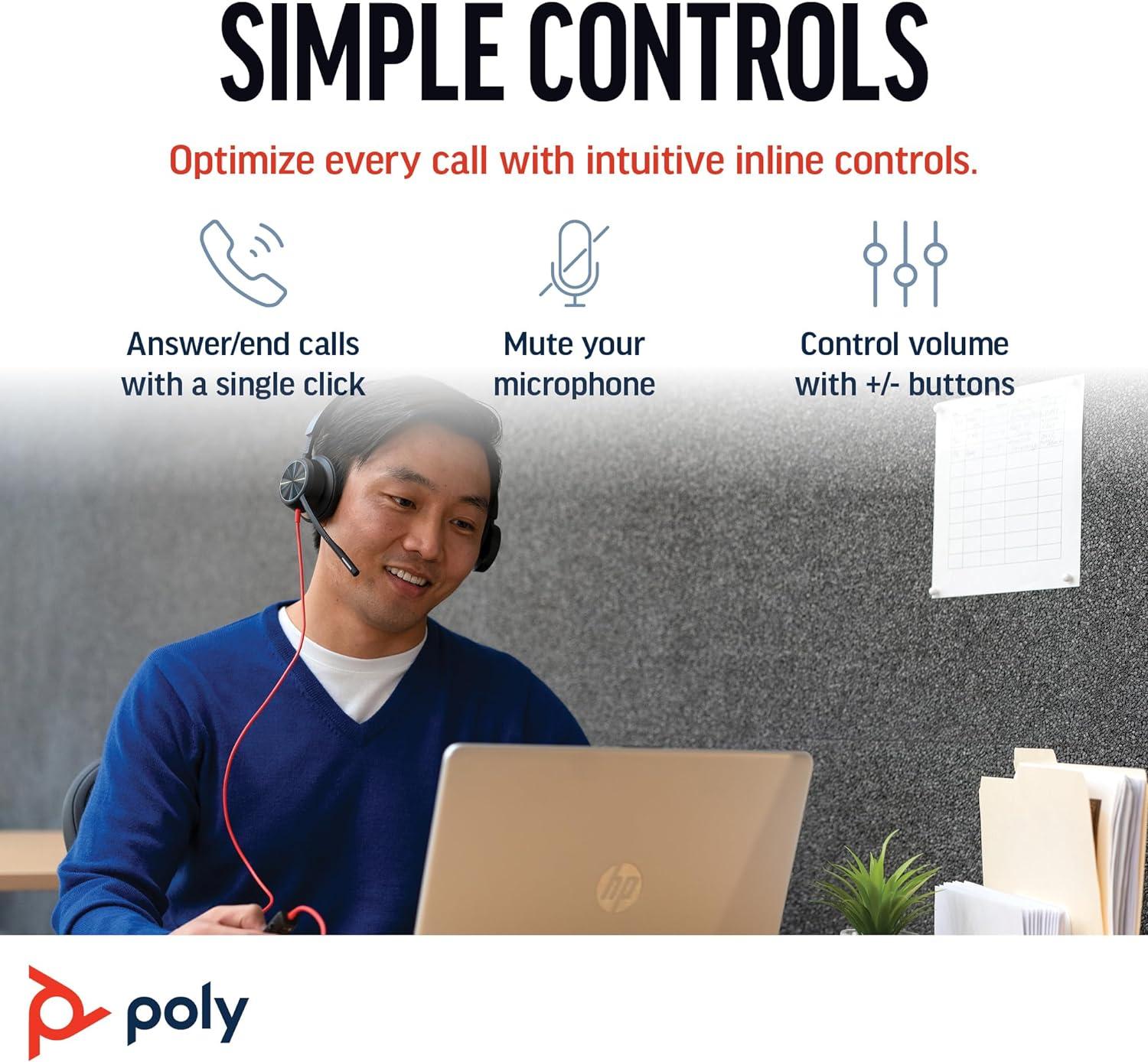 Poly Blackwire 8225 Premium Wired Headset (Plantronics) – Active Noise Canceling – Hi-fi Stereo – Connect to PC/Mac – Works w/Teams, Zoom – Amazon Exclusive(2024 Version (USB-C & USB-A))