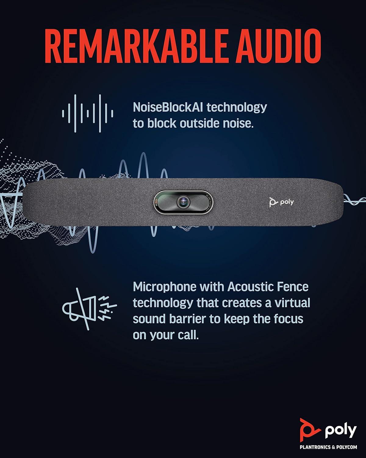 Poly Studio R30 4K Video Conference System – Camera, Mic, and Speaker Bar for Small Rooms – Presenter Tracking, NoiseBlockAI, Framing – Plug & Play – Works w/Teams, Zoom & More