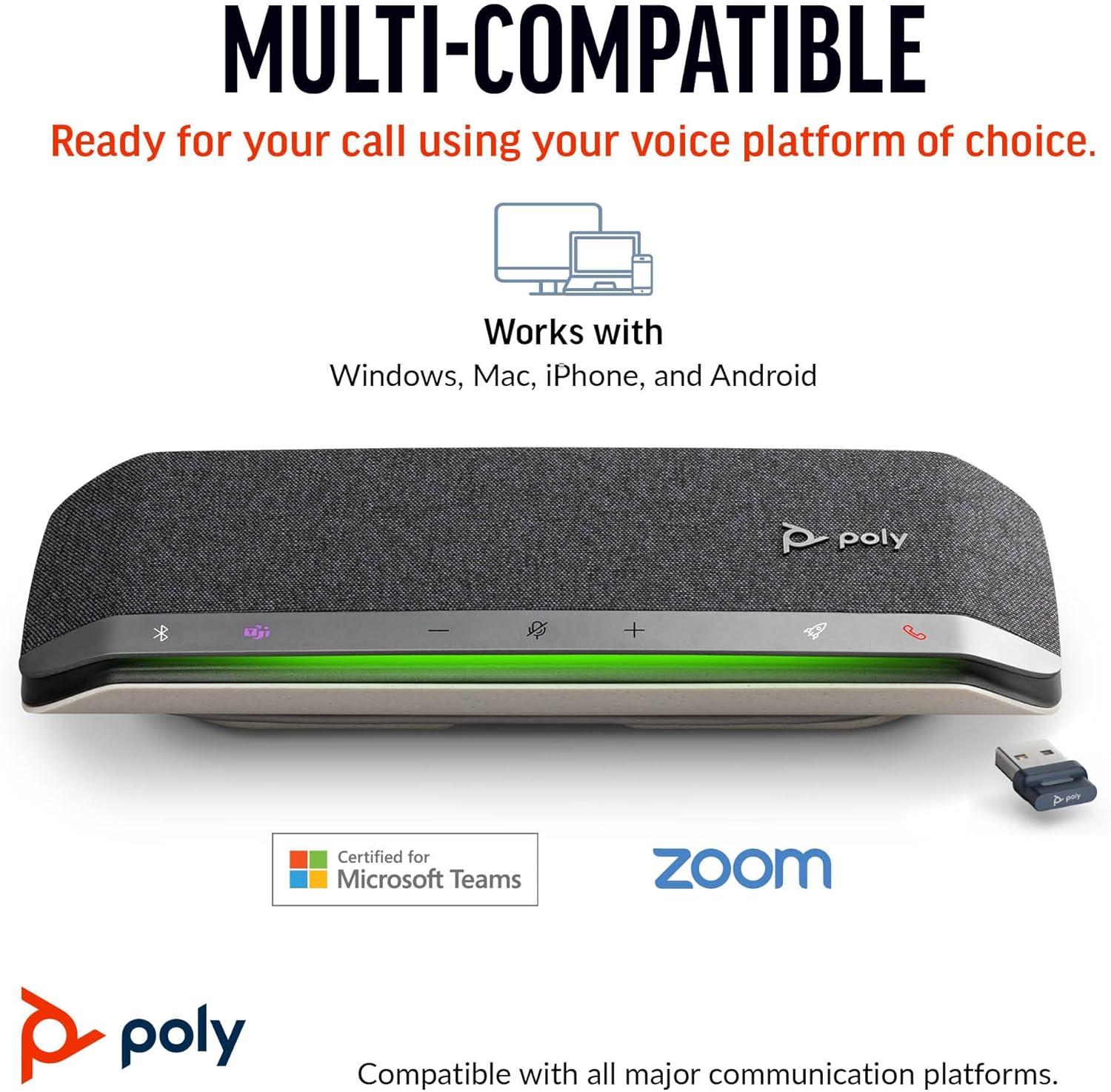 Poly Sync 40+ Smart Speakerphone (Plantronics) – Flexible Workspaces – Connect to PC/Mac via BT700 Adapter and Smartphones via Bluetooth – Works with Teams, Zoom – Amazon Exclusive(2023 Version)