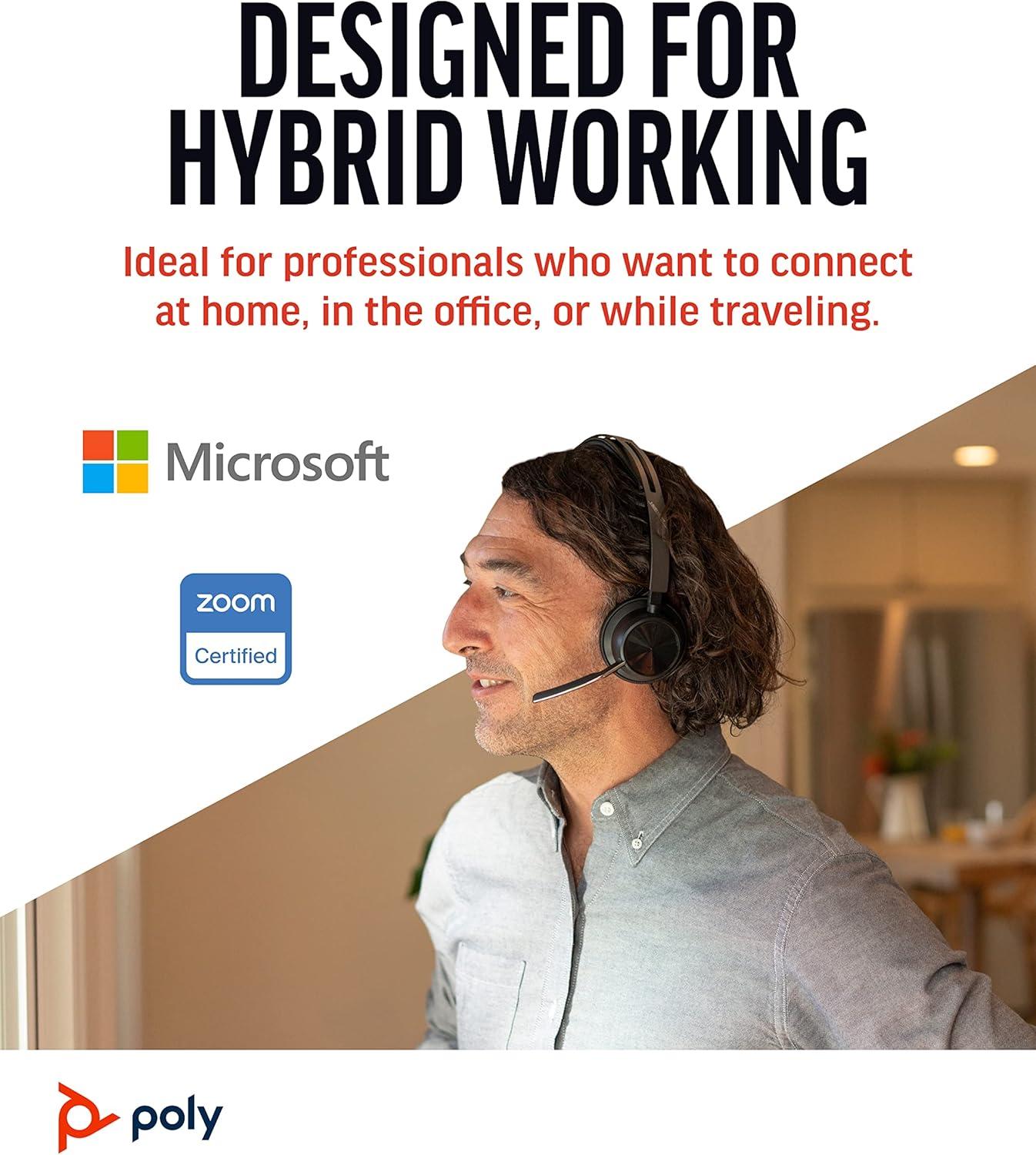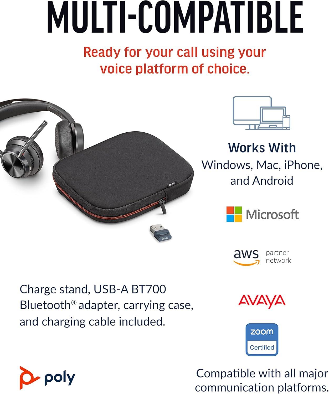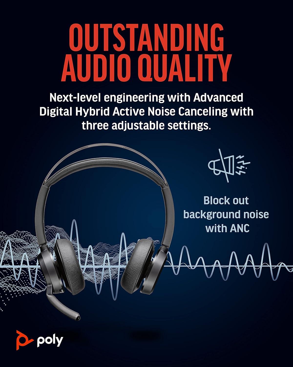 Poly Voyager Focus 2 UC Wireless ANC Headset with Mic & Charge Stand – Connect via Bluetooth to PC/Mac/Mobile – Works with Teams, Zoom & More(2021 Version (USB-A Only))